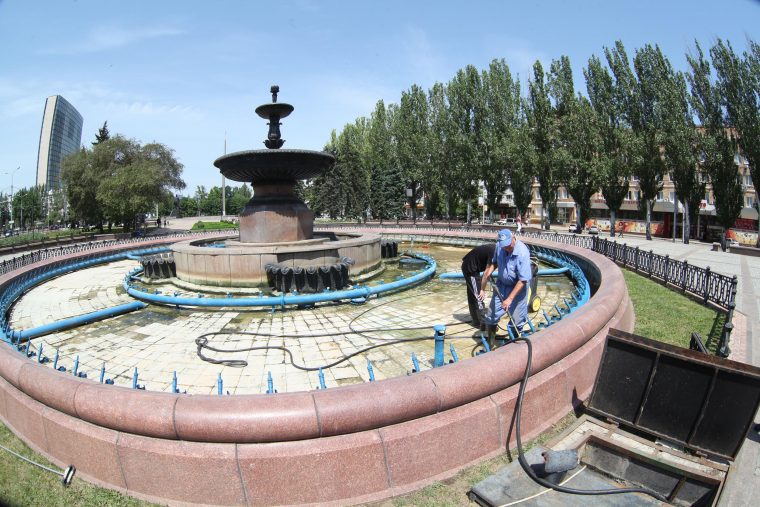 В центральной части Донецка 3 июля работники КП «Донецкгорводоканала» проводят чистку фонтанов на площади имени Ленина и в сквере возле Донецкого государственного академического музыкально-драматического театра. Такие работы позволят поддерживать эстетичный вид фонтанов, при их эксплуатации будут на должном уровне соблюдаться санитарно-гигиенические требования.
