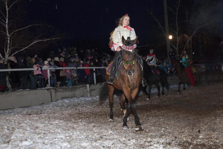 Стоит отметить, что конно-спортивный клуб «Татерсаль» регулярно проводит мероприятия социальной направленности. О программе новогоднего представления рассказала директор клуба Лариса Кунева: «Такие праздничные представления проводятся нами ежегодно, и каждый раз мы показываем новую сказку, в этом году – «Птичий двор». Всего в постановке задействовано 17 лошадей».